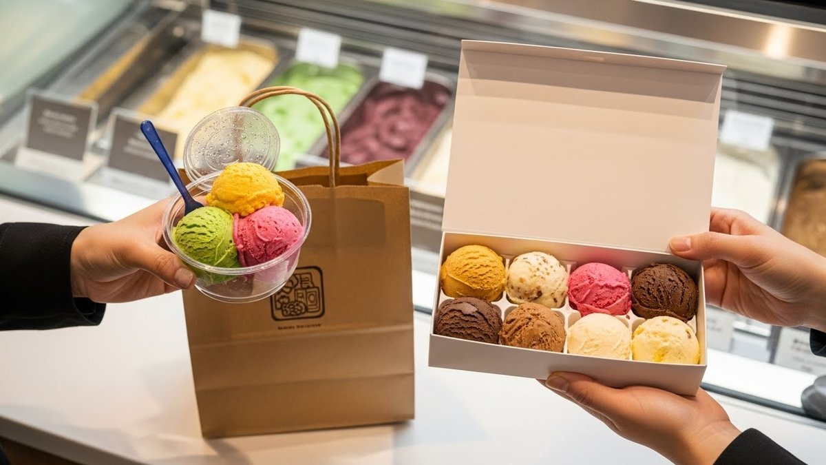 購入時に希望のフレーバーを伝えると、バランスよく詰めてくれます。長時間の持ち運びでは保冷剤やドライアイスを追加することを検討してください。