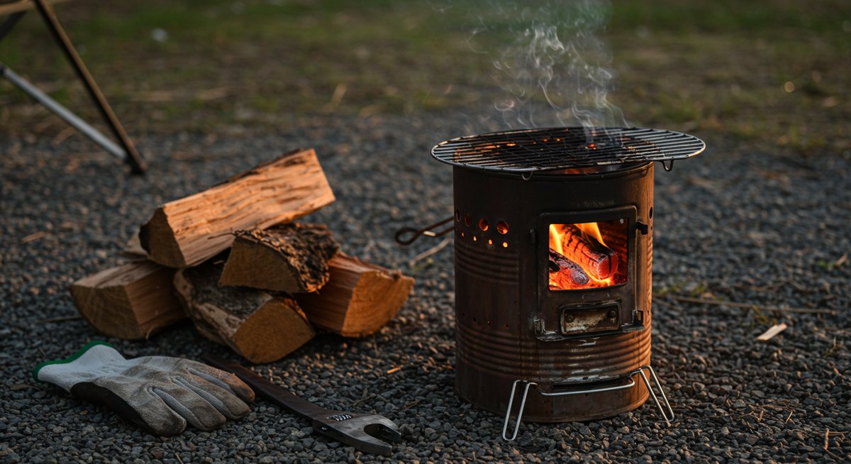 持ち運びを重視するなら脚を折りたたみ式にしたり、金網を取り外し可能にするのが効果的です。缶の一部をスライド式に加工して収納スペースを作ると薪や着火材を一緒に携行できます。
