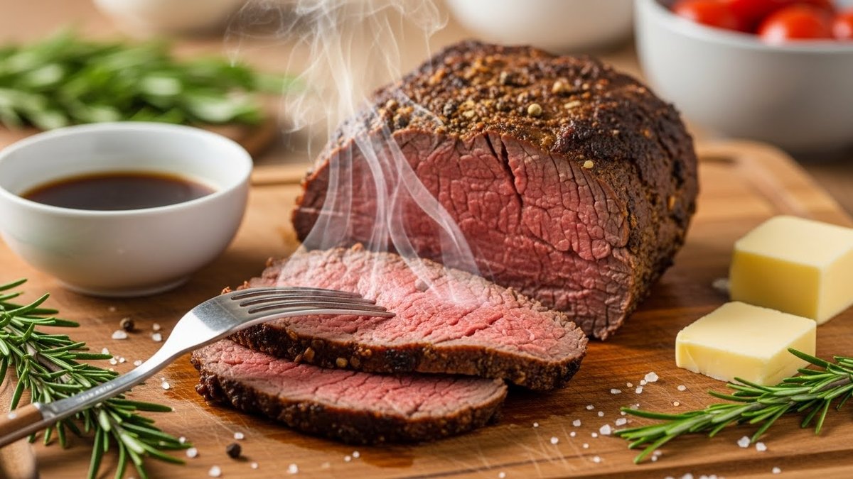 中心温度が高すぎるとタンパク質が過度に凝固し、繊維が硬くなります。高温で長時間加熱したローストビーフは噛み切りにくくなるため、最終的な中心温度を意識して調理してください。