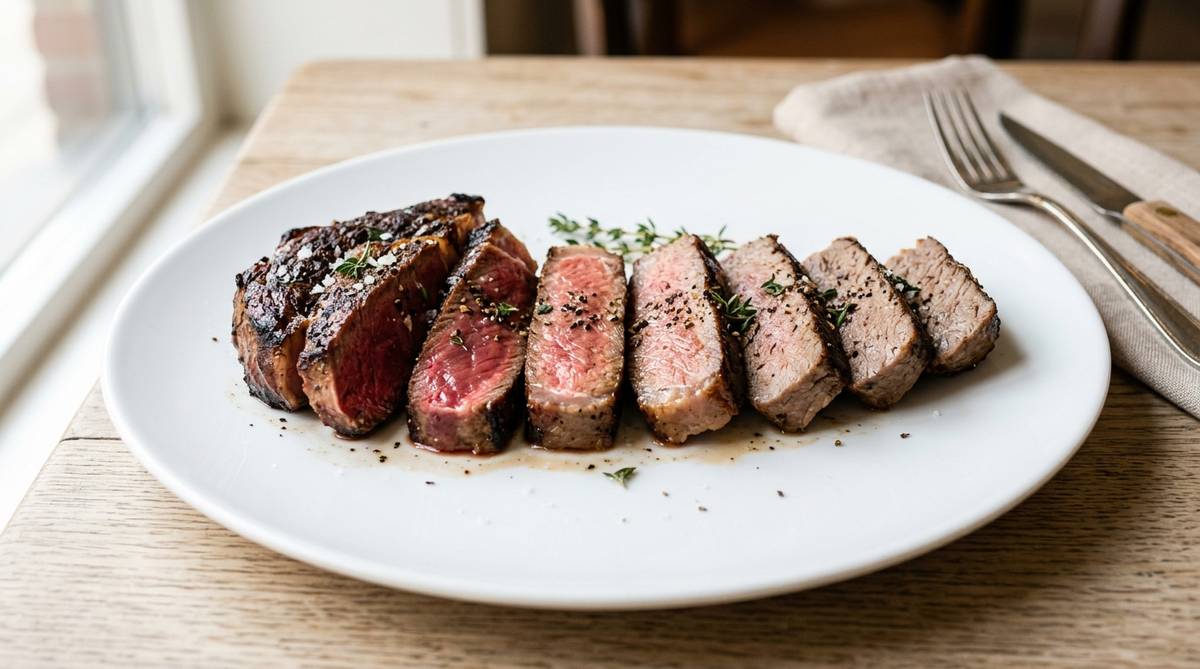 特に厚みのあるステーキ肉を焼く場合、表面から中心にかけての火の通り具合にグラデーションが生まれます。ミディアムウェルではこのグラデーションが最も美しく現れ、一口ごとに微妙に異なる食感を楽しむことができます。生っぽい肉が苦手だけれど、パサつくのも避けたいという方にとって、これ以上ないほど理想的な着地点となります。あまり注目されない焼き加減かもしれませんが、その安定感のある美味しさは、一度試してみる価値が十分にあります。