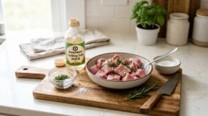 お肉を柔らかくするもう一つのアプローチは、お肉が水分を抱え込む能力、すなわち「保水力」を人為的に高めることです。牛モモ肉は加熱するとどうしても乾きやすいため、調理前に水分を蓄えやすい状態に整えてあげることが重要です。これには、私たちが普段から使っている調味料が大きな力を発揮します。
