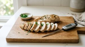 特に牛モモブロックのような厚みのあるお肉は、表面が加熱されていても中心まで熱が届くのに時間がかかります。温度計を使用し、中心温度を1度単位で管理する姿勢が求められます。「中が赤いから美味しそう」という見た目だけで判断するのは危険です。安全という確信があってこそ、心の底からお肉の柔らかさを楽しむことができるのです。
