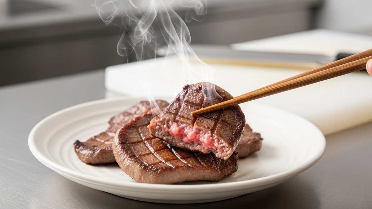 牛タンの表面や切断面に赤い汁が残っているか、焼き色が均一かを確認してください。中心が生で赤い汁が出ている場合、中心部の温度が十分でなかった可能性が高くなります。表面だけが焼けていて内部が生だった場合は、表面加熱だけでは十分な殺菌にならないことがあります。