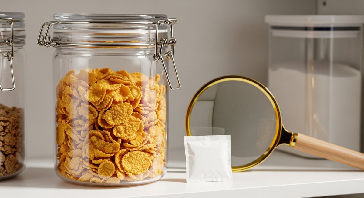 特に、箱入りのコーンフレークの場合、中の袋を箱に戻してキッチンの棚に置いていると、通気性が悪くなり湿気が溜まりやすくなります。開封した瞬間にダニへの警戒を始める必要があります。袋のまま放置するのではなく、後ほどご紹介する密閉容器へ移し替える作業をセットで行うことが、害虫被害を最小限に抑えるための賢い選択です。