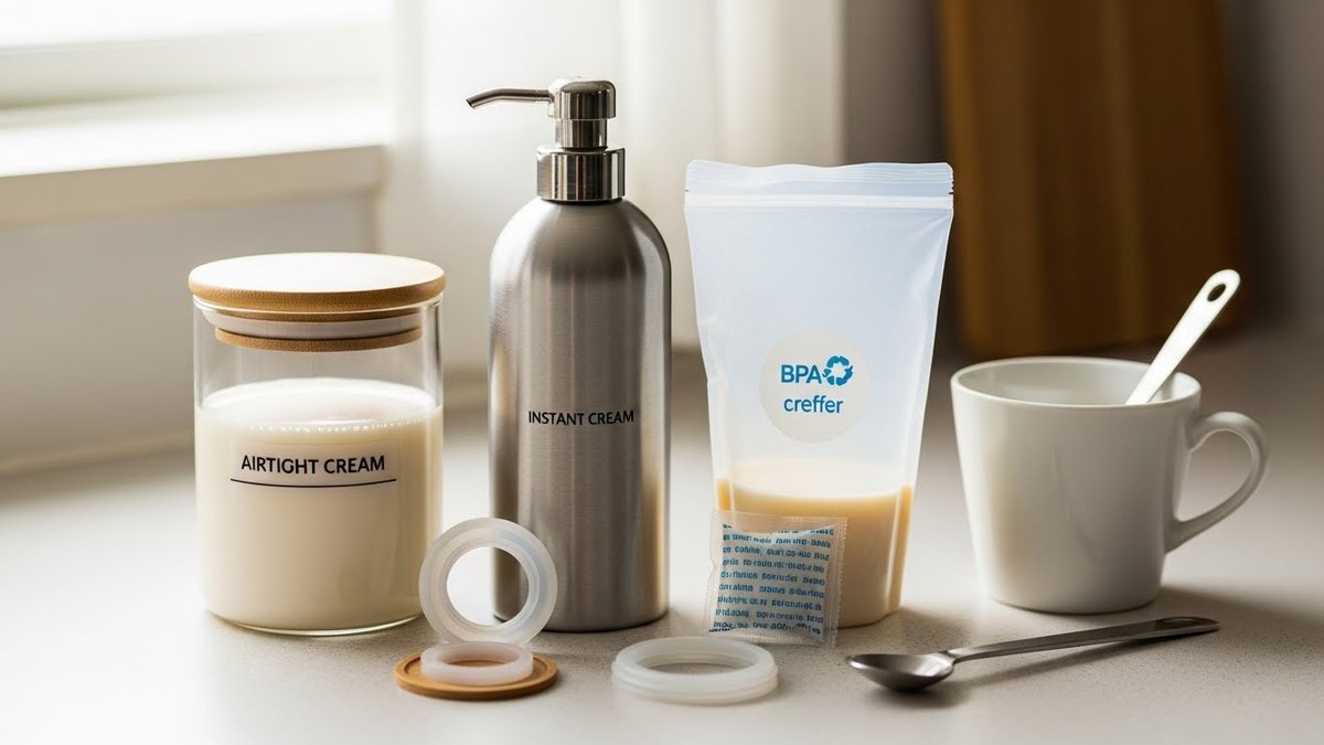 クリープのような粉末ミルクやコーヒー用フレーバーは湿気や臭い移りに弱いので、容器選びで品質を保てます。密閉性や素材、詰め替えやすさを基準にすると失敗が少ないです。