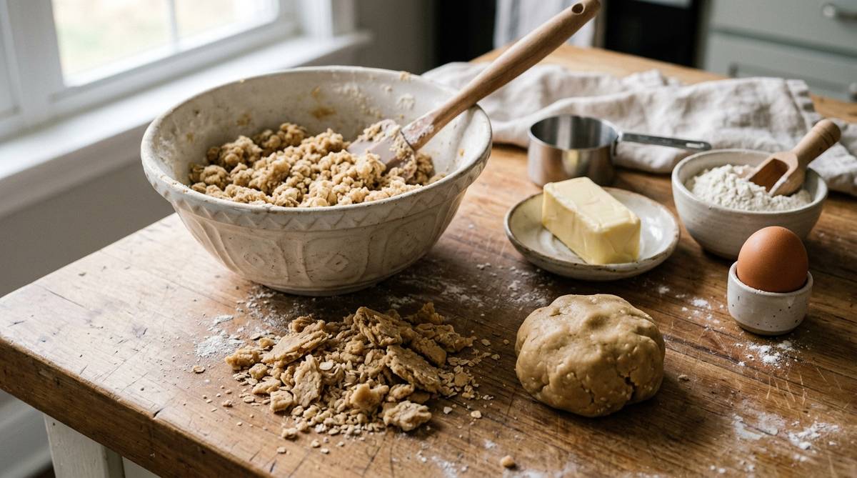 クッキーの独特な食感を生み出す「ショートニング性」という仕組みが、ボロボロの状態と深く関わっています。これは、油脂が小麦粉の粒子の表面を薄い膜で覆い、グルテンの形成を阻害する性質のことです。もしこのコーティングが適切に行われないと、水分が粉に直接触れる場所と触れない場所のムラが激しくなり、生地は一貫性を失って崩れてしまいます。