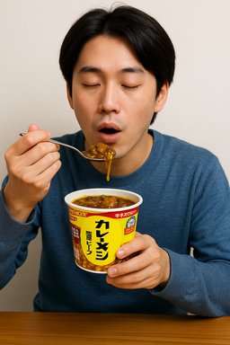 他の類似商品と比べると、例えばカップラーメン(塩味)で約350kcal、レトルトカレー+ご飯で約500〜600kcal程度なので、カレーメシは間に位置します。おやつとしては多め、主食としては1食分として十分なボリュームです。糖質やカロリーが気になる場合は、摂取量を調整し、野菜やたんぱく質のおかずでバランスをとるのがよいでしょう。
