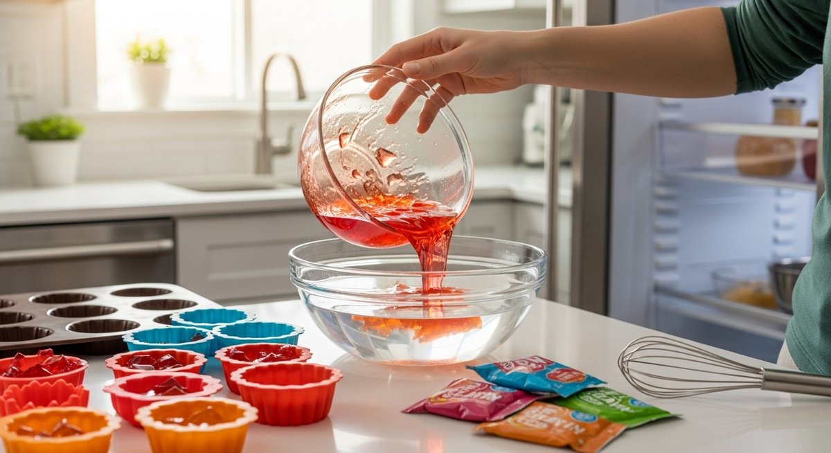 液体が50度以上に温まっていれば、ふやかしたゼラチンはスムーズに溶け込みます。追加した後は、溶け残りがなくなるまでしっかり混ぜることが重要です。入れすぎるとゴムのような硬い食感になってしまうため、レシピの分量を再確認しながら慎重に足していきましょう。味見をして、もし薄まっていると感じたら、砂糖や果汁を少し足して調整できるのも再加熱ならではのメリットです。