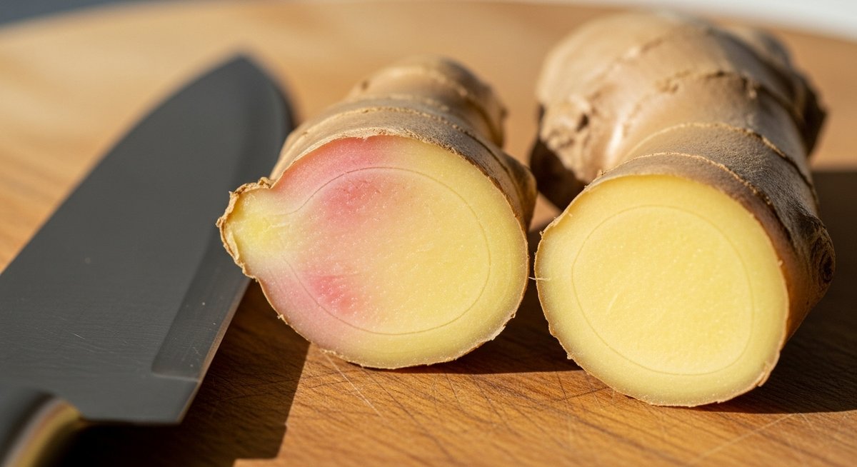 生姜の細胞が傷つくと酵素が働き、メラニン様の色素が生成されてピンクや赤っぽく見えることがあります。これは酸化や褐変と呼ばれる現象で、必ずしも有害ではありません。切り口が空気に触れて短時間で変色することがよくあります。