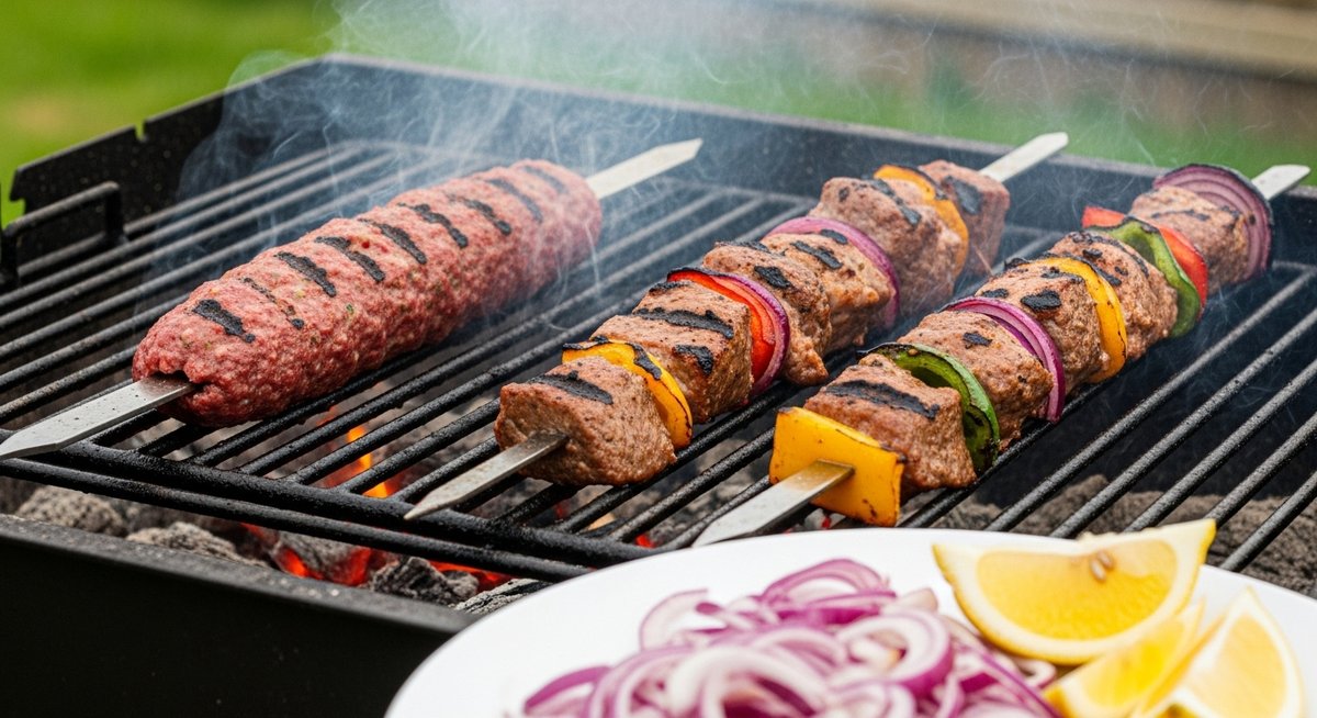 一方のシシカバブは、炭火やグリルによる「直火焼き」が基本です。火の上に直接肉を置くため、脂が炭に落ちて上がる煙が肉に独特のスモーキーな香りを纏わせます。この「煙の香り」こそがシシカバブの真骨頂であり、シンプルながらも野性味あふれる風味を際立たせます。炙りによる均一な旨味か、直火によるエネルギッシュな焦げの香りとジューシーさか、その日の気分によって選ぶ楽しみがあります。