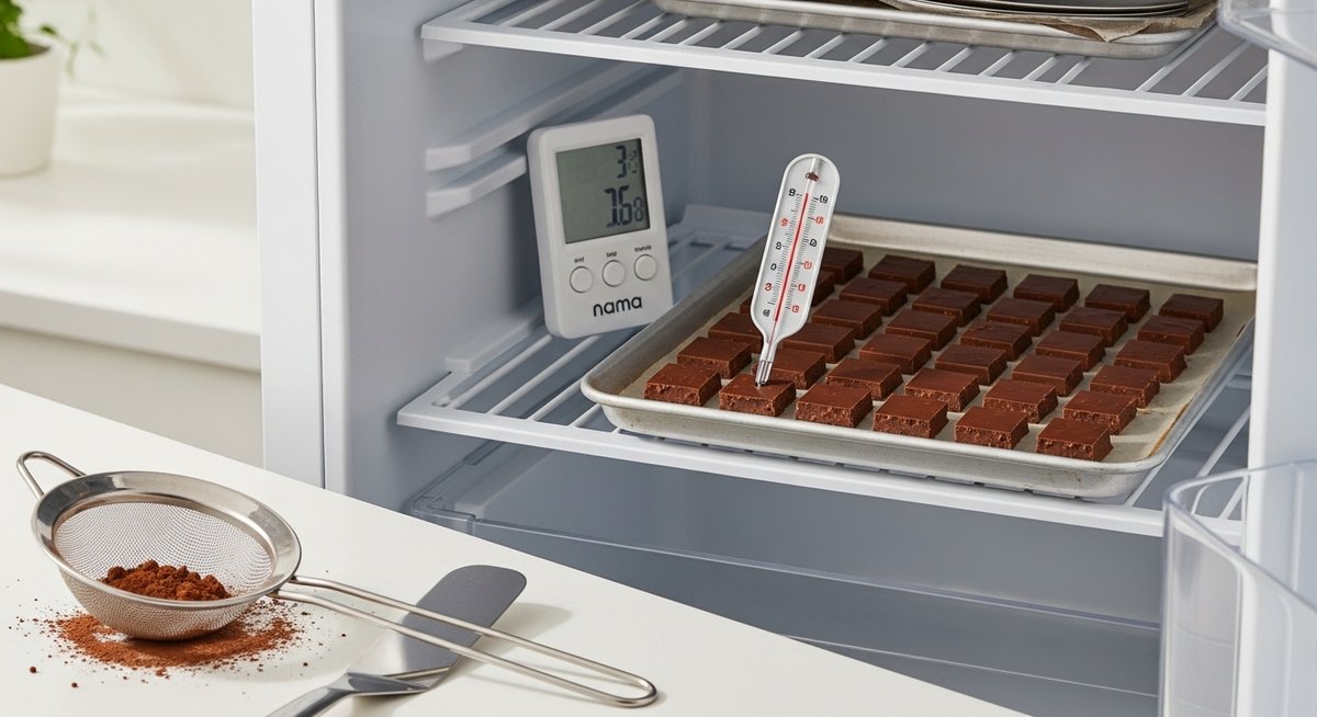 冷蔵庫内のどこに置くかという点も、意外と見落としがちな要素です。冷蔵庫は場所によって温度のムラがあります。一般的に、冷気の吹き出し口に近い「奥側」や「下段」は温度が低く保たれており、生チョコを早く固めるのに適しています。一方で、ドアポケット付近などは開閉のたびに外気が入り温度変化が激しいため、安定した冷却が求められる生チョコの保存には向いていません。