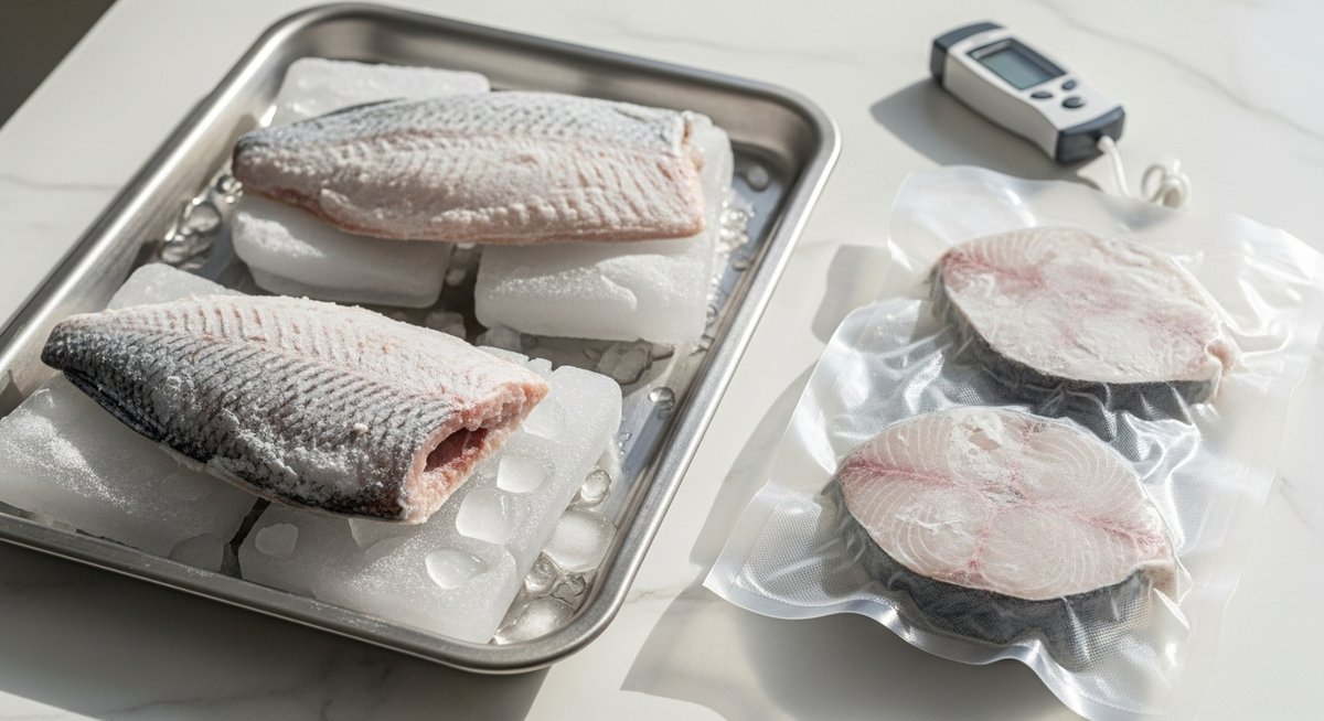 再冷凍を成功させるには、魚の温度管理を正確に行うことも重要です。料理用のデジタル温度計があれば、解凍中の魚の温度を測ることができ、5度を超えていないか確認できます。また、最近では「解凍トレー」という、アルミの熱伝導を応用した解凍専用の板も販売されています。これを使えば冷蔵庫の中でも素早く、かつ低温を維持したまま解凍できるため、再冷凍に回す際のダメージを軽減できます。