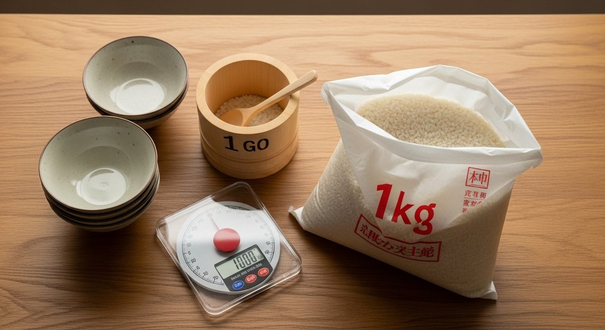 家庭で簡単に量りたい場合は、キッチンスケールで150グラムを基準にすると安定します。大量に買うときは袋に記載の内容量を確認して、必要な合数に換算してください。