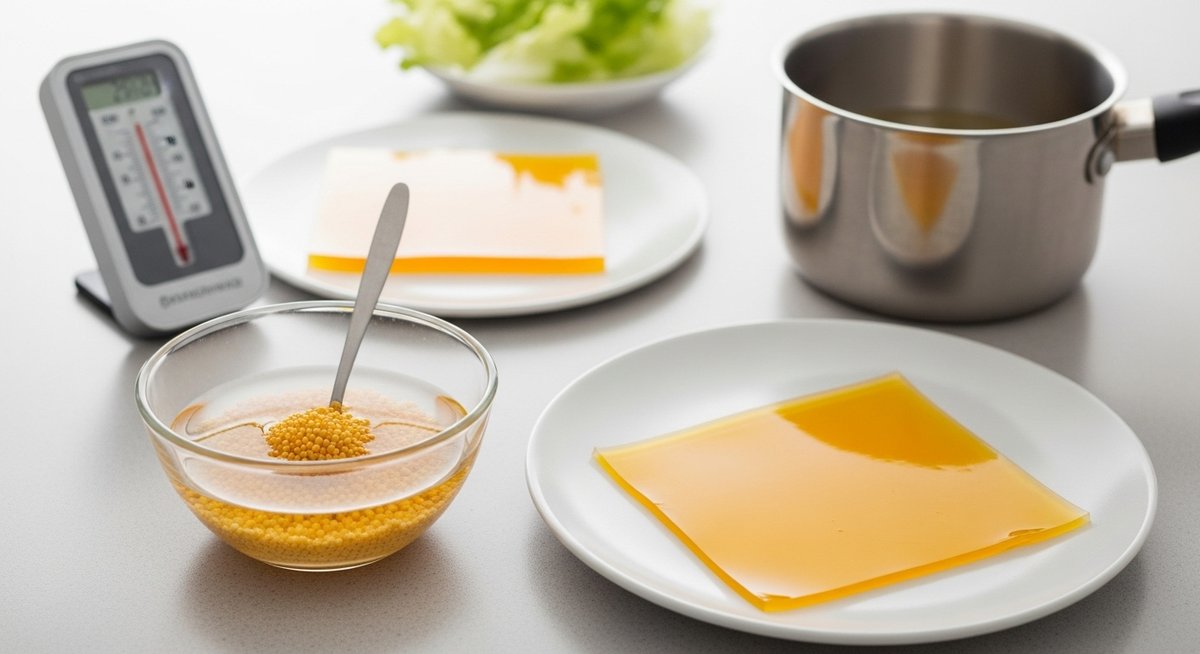 また、粒子サイズが小さい粉ゼラチンは、溶かす際の加熱時間が短くて済むという利点もあります。熱に弱い繊細な香りのフルーツジュースなどを使用する場合、手早く溶かせる粉ゼラチンは非常に便利です。逆に、じっくりと火を通しながら不純物を取り除きたいコンソメスープのゼリー寄せなどには、ゆっくり溶ける板ゼラチンの方が扱いやすいこともあります。それぞれの形状に由来する性質を知ることで、代用時にも慌てずに対処できるようになるでしょう。