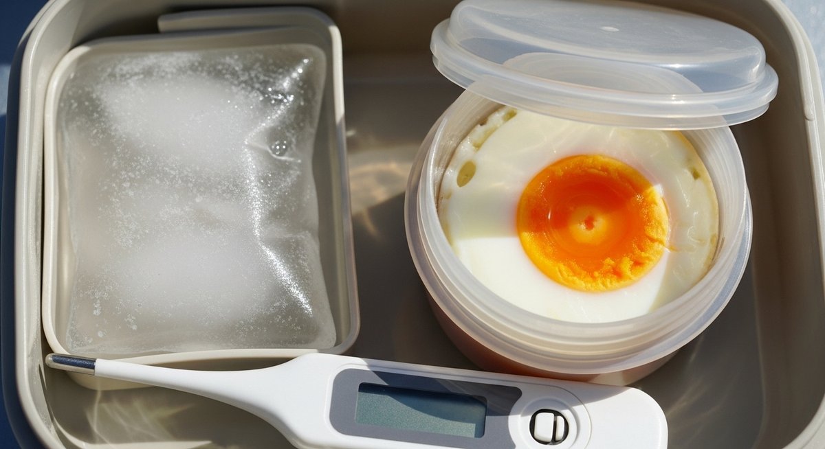 保冷剤は、目玉焼きの入った容器の上に乗せるように配置すると、冷たい空気が下に流れるため効率よく冷やすことができます。温度が10℃以上に上がると、細菌の増殖スピードは一気に加速します。「食べる直前までしっかり冷やす」ことを徹底することで、半熟の状態であっても安全性を確保しやすくなります。移動時間が長い場合は、特に念入りな保冷を心がけてください。