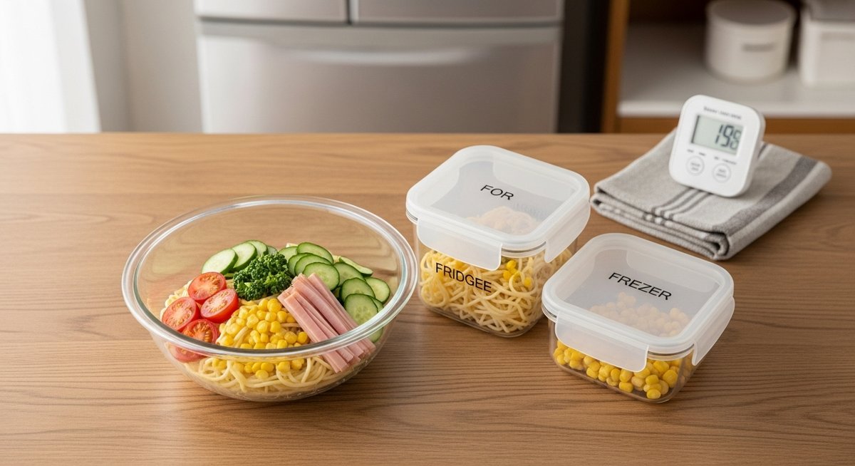 スパサラの作り置きは手軽で便利ですが、安全に美味しく保存するためにはいくつかのルールを守ることが大切です。具材選び、冷ます手順、小分け保存を習慣にすると失敗が減ります。