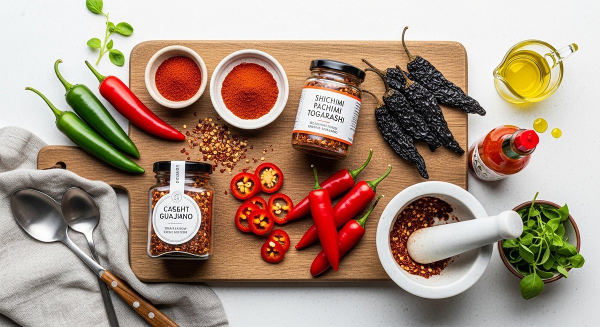 家庭にある一般的な材料で代用するなら、優先順位は次の通りです:粉(一味・粉唐辛子)、チリパウダー/カイエン、ラー油・唐辛子ペースト、生唐辛子。粉は使いやすく多用途、チリ系は強い辛味、オイル系は香り付けに優れます。