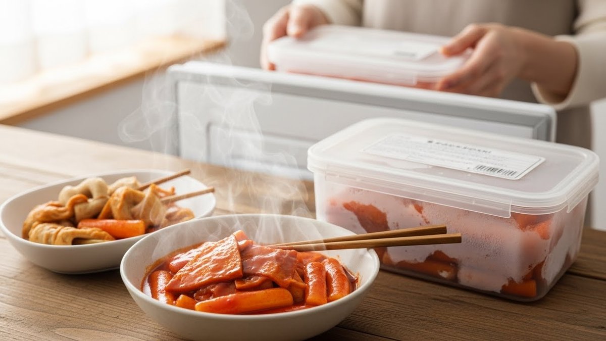 まずはトッポギをできるだけ早く冷ますことから始めます。熱いまま容器に密封して冷蔵庫に入れると庫内の温度が上がり、他の食材に影響します。粗熱が取れたら密封容器や保存袋に入れて冷蔵もしくは冷凍してください。