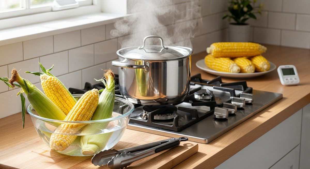 蒸し器を使うことで、高温の蒸気が皮の表面を柔らかくしつつ、実の内側に水分を閉じ込めることができます。蒸し時間は10分〜12分程度が目安です。蒸し上がったあとに、すぐにザルに上げず、蓋をしたまま数分蒸らすことで、より実がふっくらと仕上がります。お湯を使わないため、とうもろこし本来の濃い味を維持できるのがメリットです。